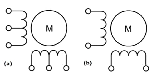 Figure 4: a) Unipolar stepper motor  b) Bipolar stepper motor